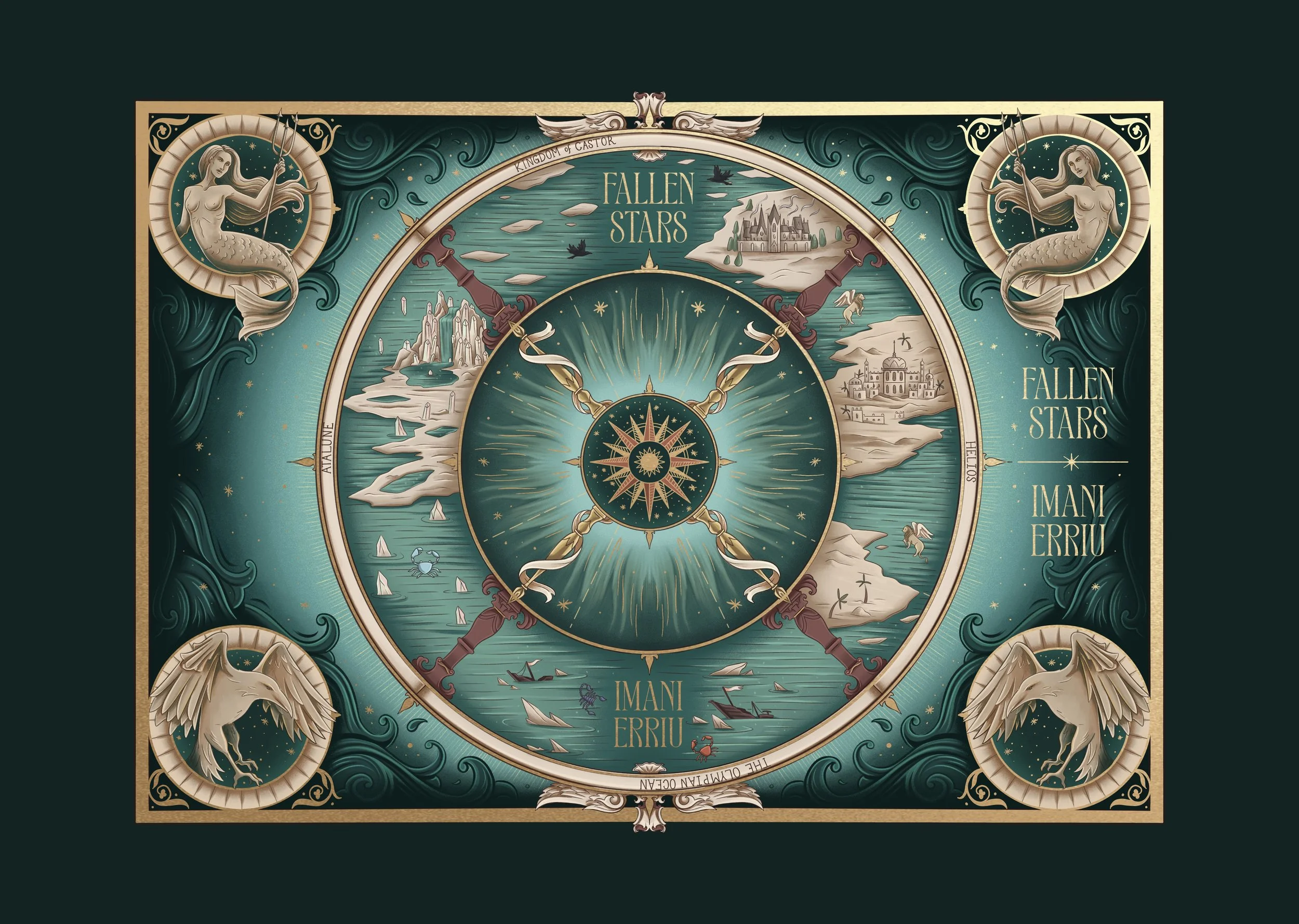 Hardcover case illustration created for the Fairyloot editions of Heavenly Bodies and Fallen Stars, by Imani Erriu.